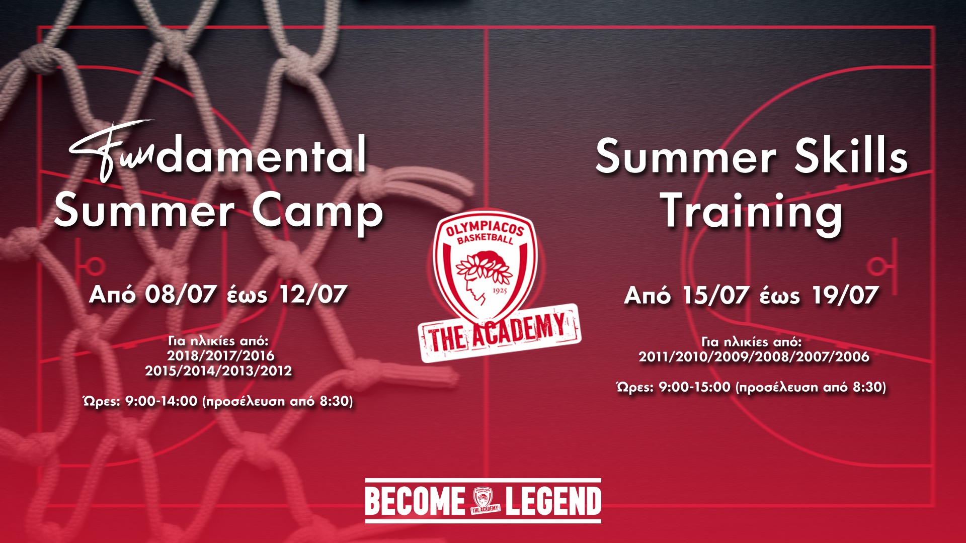 Έρχονται τον Ιούλιο και μόνο για 2 εβδομάδες, λόγω του προολυμπιακού τουρνουά, τα καλοκαιρινά camp των ακαδημιών της KAE Ολυμπιακός.