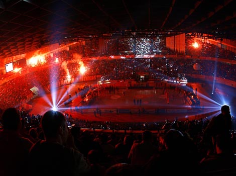 Τα επίσημα εγκαίνια πραγματοποιήθηκαν τον Φεβρουάριο του 1985. Για αγώνες μπάσκετ, η χωρητικότητα έφτανε τους 11.640 θεατές με τη χρήση πτυσσόμενων κερκίδων, ενώ αξίζει να σημειωθεί ότι ο πλήρης χρόνος εκκένωσης του σταδίου έχει μετρηθεί στα 3 λεπτά, στοιχείο που καταδεικνύει τον υψηλό βαθμό ασφάλειας και σχεδιασμού.