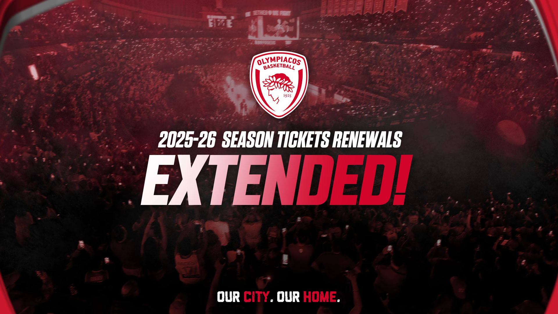 Η Κ.Α.Ε. ΟΛΥΜΠΙΑΚΟΣ ανακοινώνει την παράταση των ανανεώσεων των εισιτηρίων διαρκείας περιόδου 2025/2026 μέχρι την Πέμπτη 15/05/2025 και ώρα 23:00.