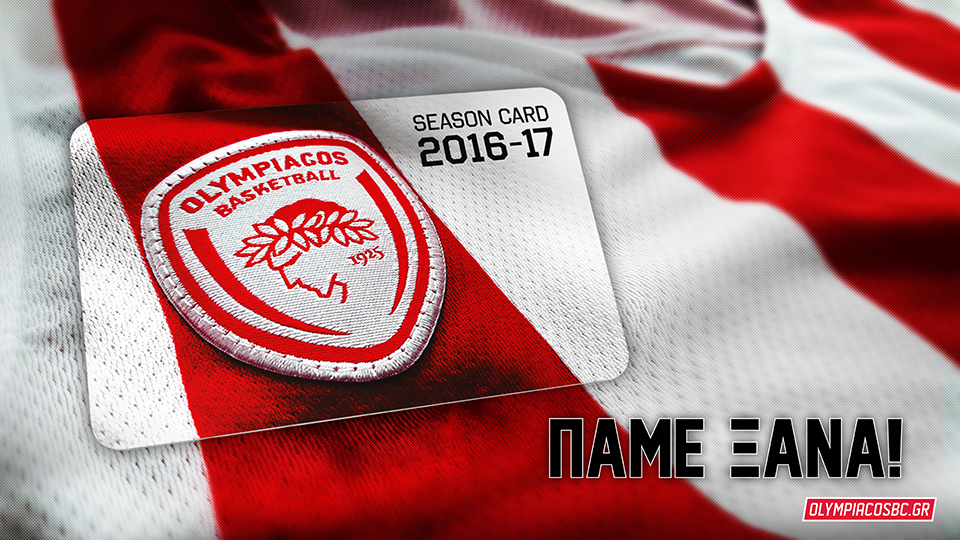 Η Διεύθυνση Εισιτηρίων της ΚΑΕ ΟΛΥΜΠΙΑΚΟΣ υπενθυμίζει στους φιλάθλους της ομάδας, ότι η διάθεση των καρτών διαρκείας θα συνεχιστεί έως και την Παρασκευή 30 Σεπτεμβρίου 2016.