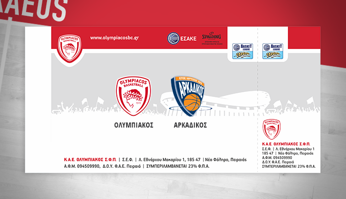 Η Διεύθυνση Εισιτηρίων της Κ.Α.Ε. ΟΛΥΜΠΙΑΚΟΣ ανακοινώνει, ότι η διάθεση των εισιτηρίων για τον Αγώνα Ελληνικού Πρωταθλήματος με τον ΣΕΦΑ Ο ΑΡΚΑΔΙΚΟΣ, ο οποίος θα διεξαχθεί την Δευτέρα 26/10/2015 με ώρα έναρξης 18:30, πραγματοποιείται ως εξής: