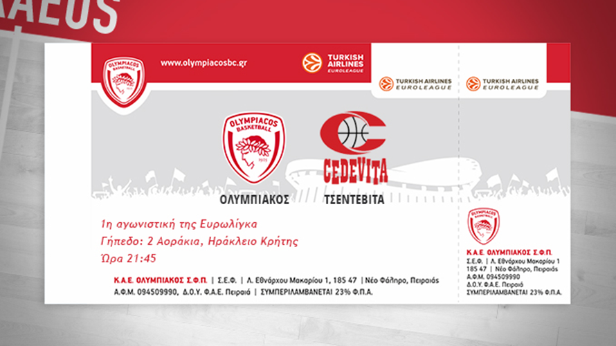 Η ΚΑΕ ΟΛΥΜΠΙΑΚΟΣ ανακοινώνει ότι υπάρχουν ακόμα διαθέσιμα εισιτήρια για τον αγώνα της ομάδας μας με την Τσεντεβίτα Ζάγκρεμπ, την Πέμπτη 15.10 στις 21.45.