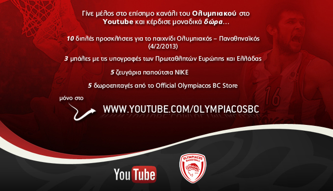 Γίνετε συνδρομητές στο Κανάλι του Ολυμπιακού στο YouTube και κερδίστε μοναδικά δώρα!!