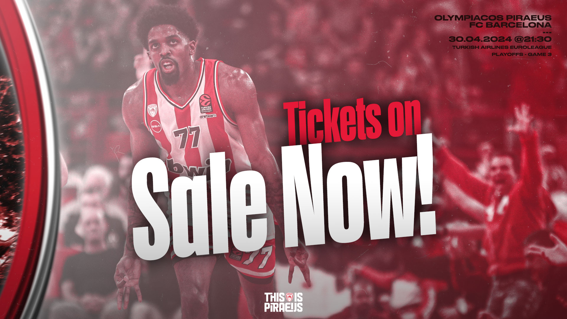 Η ΚΑΕ Ολυμπιακός ανακοινώνει πως τα εισιτήρια για τον 3ο προημιτελικό με την Μπαρτσελόνα 30/04, 21:30) εξαντλήθηκαν, μέσα σε ελάχιστη ώρα από την κυκλοφορία τους!