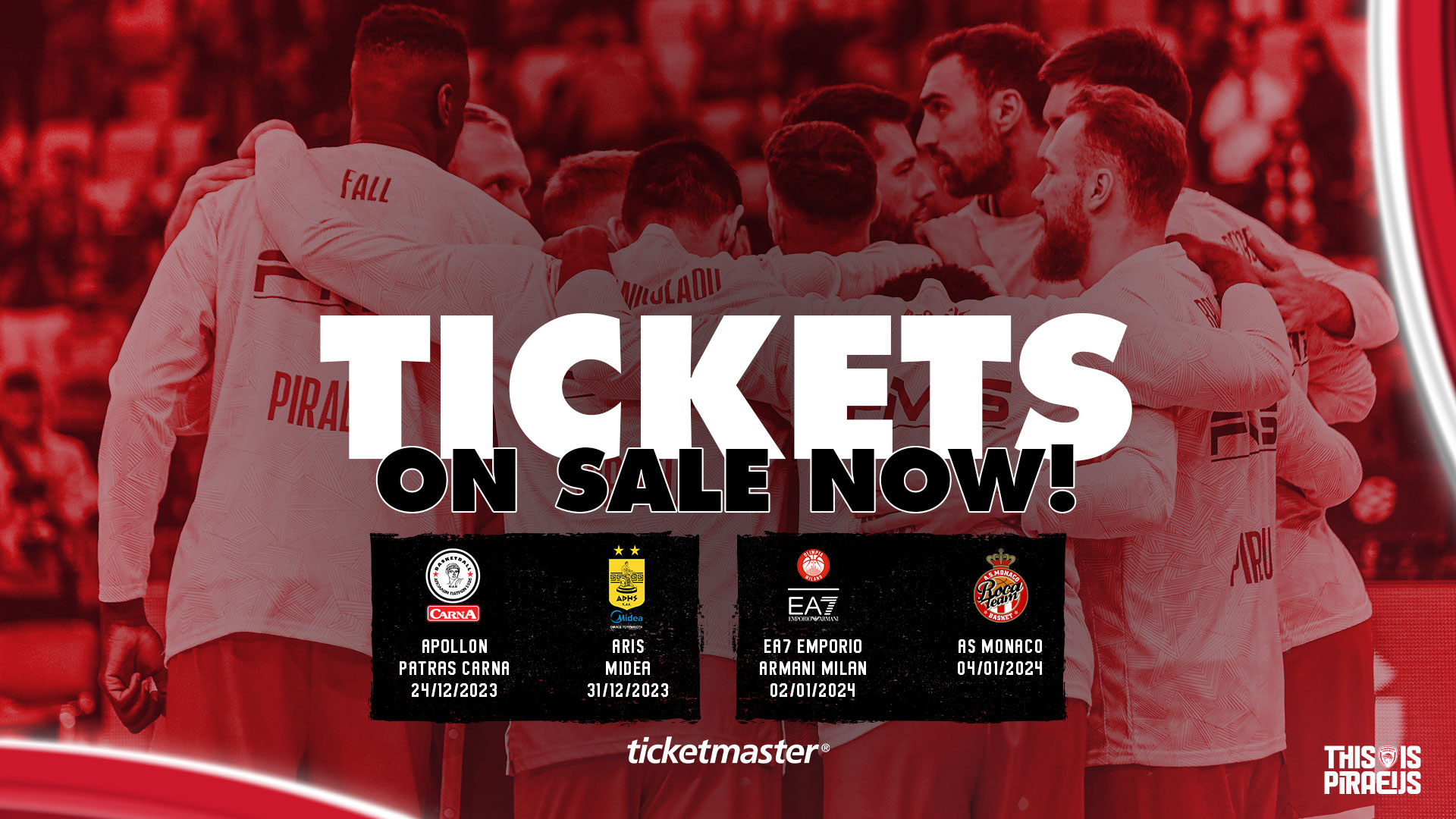 Για την καλύτερη εξυπηρέτηση και προγραμματισμό των φιλάθλων, η Κ.Α.Ε. ΟΛΥΜΠΙΑΚΟΣ ανακοινώνει ότι συνεχίζεται κανονικά η πώληση των εισιτηρίων για τους Ευρωπαϊκούς αγώνες του ΙΑΝΟΥΑΡΙΟΥ καθώς επίσης και για τους δύο Αγώνες της STOIXIMAN BASKET LEAGUE του Δεκεμβρίου.