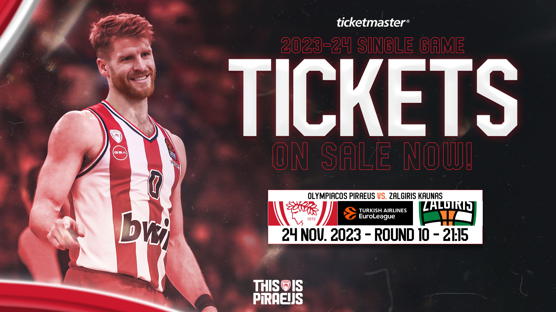 H Κ.Α.Ε ΟΛΥΜΠΙΑΚΟΣ ανακοινώνει ότι, για τον αγώνα με την ZALGIRIS KAUNAS της ΠΑΡΑΣΚΕΥΗΣ 24/11/2023 με ώρα έναρξης 21:15, η διάθεση των εισιτηρίων γίνεται: