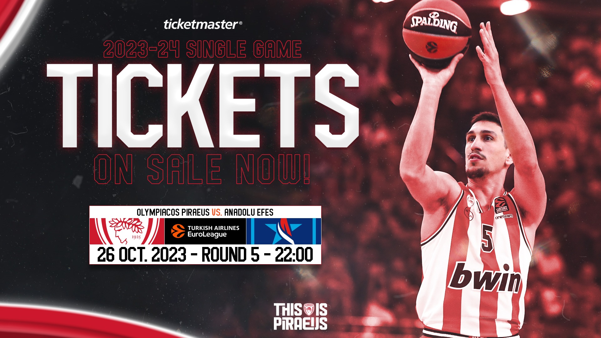 H Κ.Α.Ε ΟΛΥΜΠΙΑΚΟΣ ανακοινώνει ότι, για τον αγώνα με την ANADOLUEFESISTANBUL της ΠΕΜΠΤΗΣ 26/10/2023 με ώρα έναρξης 22:00, η διάθεση των εισιτηρίων θα γίνει ως εξής: