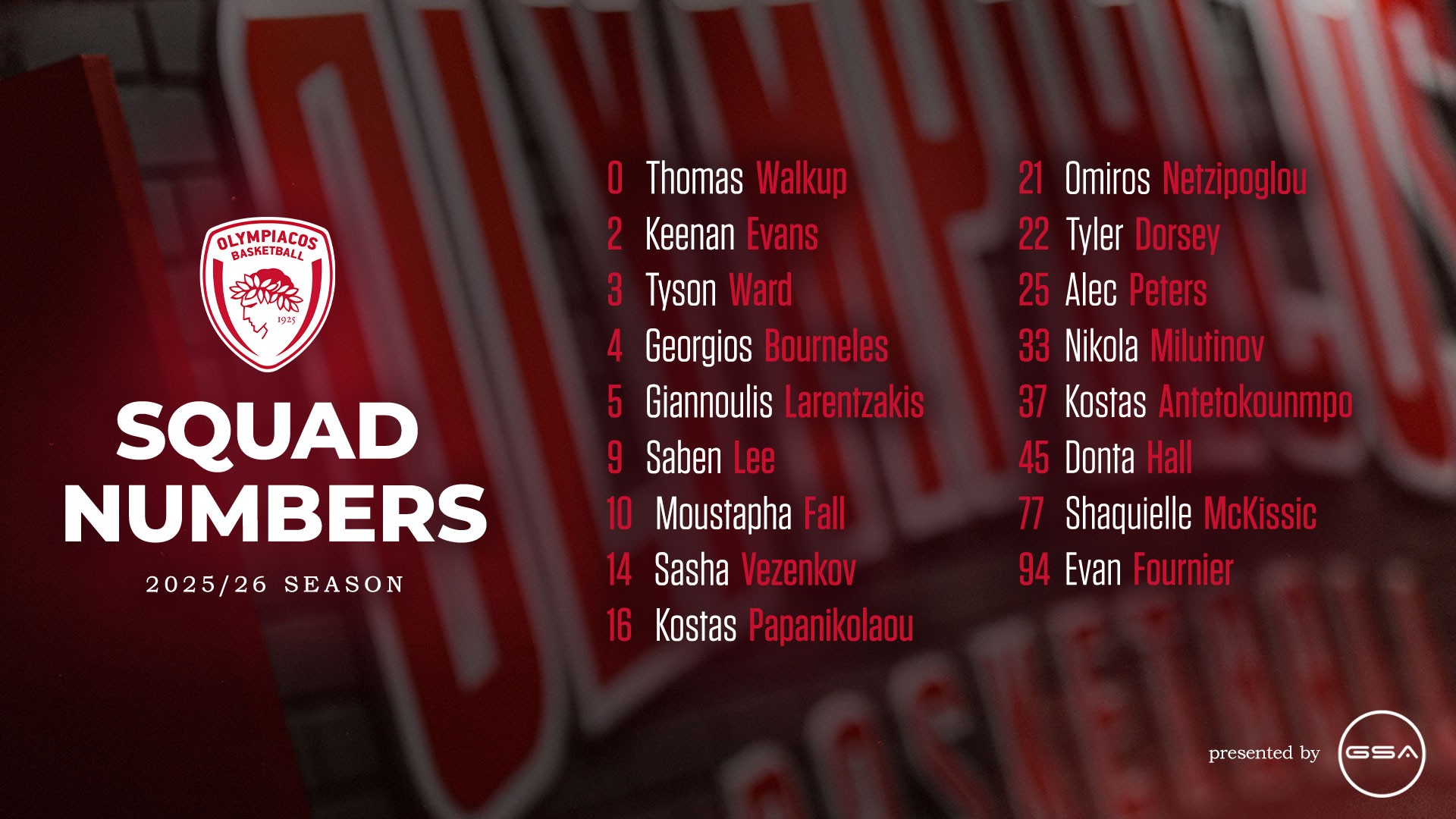 Οι παίκτες του Ολυμπιακού επέλεξαν τα νούμερα στις φανέλες τους για τη σεζόν 2025-2026.