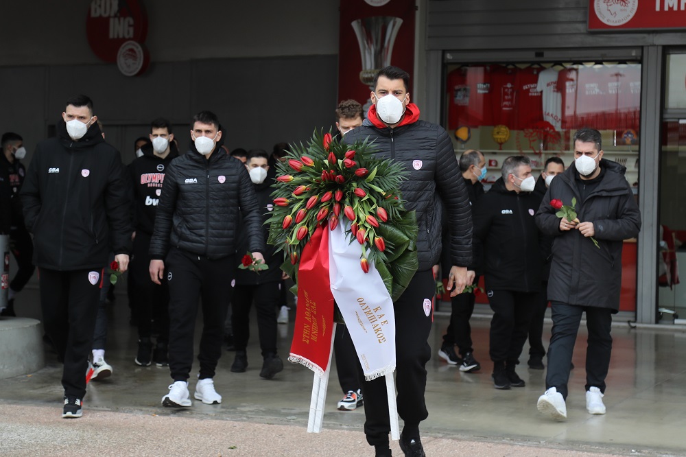 Το μεσημέρι της Τρίτης (08/02) σύσσωμη η ομάδα του Ολυμπιακού επισκέφθηκε το μνημείο των θυμάτων της Θύρας 7 και απέτισε φόρο τιμής στους 21 αδικοχαμένους φιλάθλους.