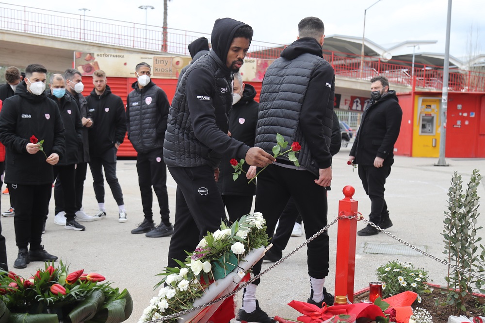 Ο αρχηγός, Γιώργος Πρίντεζης, εναπόθεσε στεφάνι, ενώ όλα τα μέλη της ομάδας άφησαν από ένα κόκκινο τριαντάφυλλο.