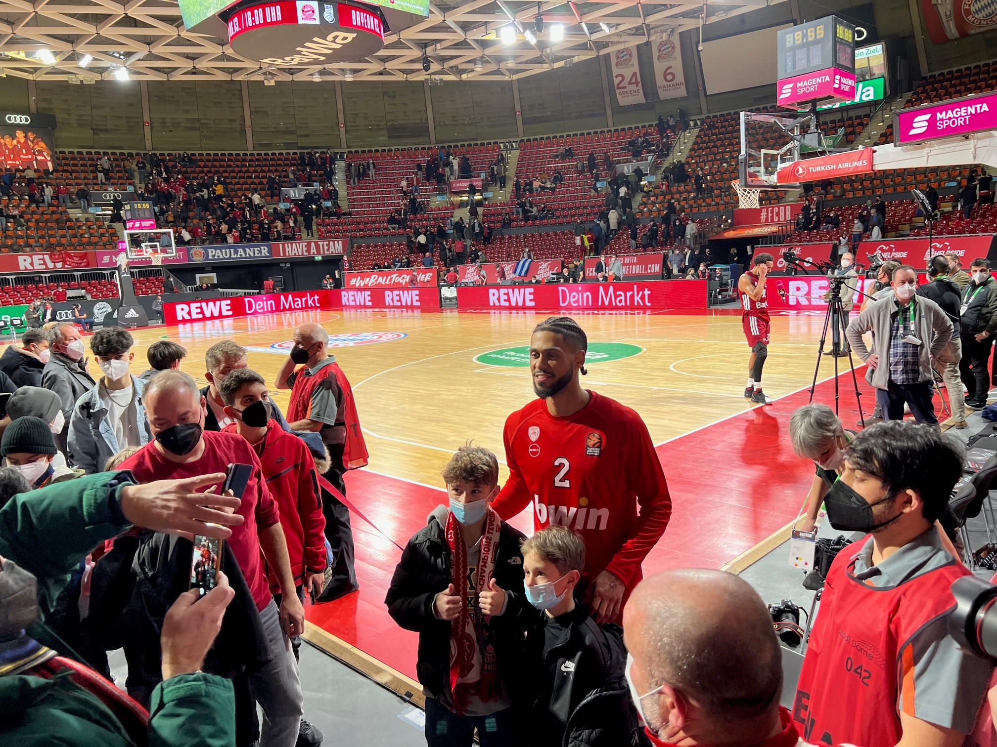 Πολλοί ήταν εκείνοι που έσπευσαν να φωτογραφηθούν με τους αγαπημένους τους παίκτες πριν το τζάμπολ της αναμέτρησης με την Μπάγερν και ακόμη περισσότεροι εκείνοι που έπραξαν το ίδιο μετά το τέλος του αγώνα.