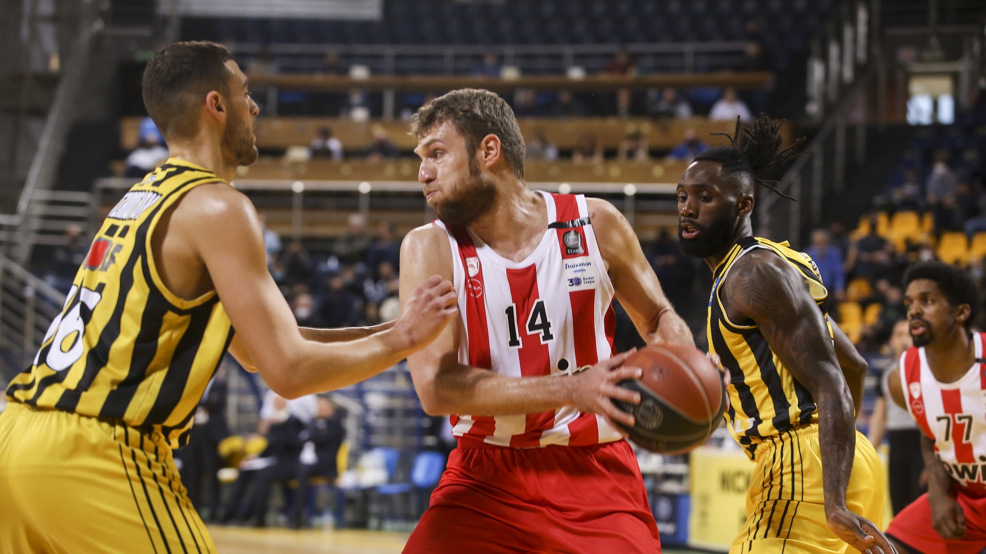 Ο Ολυμπιακός επιβλήθηκε στο «Nick Galis Hall» του Άρη με 87-76, στην εξ’ αναβολής αναμέτρηση της 11ης αγωνιστικής της Stoiximan Basket League.