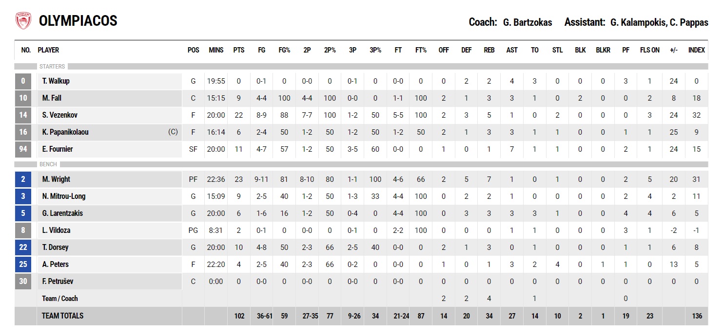 Κυριαρχικός ο Ολυμπιακός επιβλήθηκε 102-72 του Άρη για τη 2η αγωνιστική της Basket League.