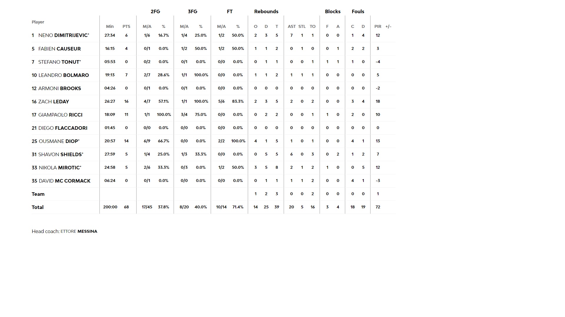 Με τον Μουστάφα Φαλ να κυριαρχεί στο «ζωγραφιστό» και τον Σάσα Βεζένκοφ μεγάλο πρωταγωνιστή επιθετικά, ο Ολυμπιακός ξεκίνησε πολύ δυναμικά το παιχνίδι με την Αρμάνι. «Έτρεξε» ένα γρήγορο 7-0 στο πρώτο 1,5 λεπτό, ενώ στο 3' ο φωτεινός πίνακας «έγραφε» 12-2. Κάποιες κακές επιλογές στην επίθεση και χαμένα αμυντικά ριμπάουντ επέτρεψαν στην Αρμάνι να αντιδράσει στη συνέχεια και με ένα επιμέρους 15-4 να προσπεράσει (16-17, 9'). Οι Σακίλ ΜακΚίσικ, Σάσα Βεζένκοφ και Κώστας Παπανικολάου είχαν όμως «απάντηση» και με ένα σερί 7-0 έδωσαν προβάδισμα 6 πόντων στην ομάδα μας στο κλείσιμο του πρώτου δεκαλέπτου (23-17). Η δεύτερη περίοδος ξεκίνησε με πέντε διαδοχικούς πόντους του Λεντέι, με τους Ιταλούς να πλησιάζουν στο -1. Ένα «goal - foul» του ΜακΚίσικ όμως για το 26-22 (12'), έδωσε το έναυσμα για ένα επιμέρους 13-5, που έστειλε τους Πειραιώτες στα αποδυτήρια για το ημίχρονο στο +12 (39-27).