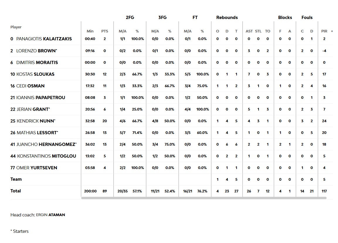 Στην τρίτη περίοδο η ομάδα μας δεν μπήκε με την ίδια συγκέντρωση στην άμυνα. Τα λάθη και οι κακές αντιδράσεις επέτρεψαν στους γηπεδούχους να μειώσουν στον πόντο (49-50, 26'), με το παιχνίδι να αποκτά «τρελό» ρυθμό επιθετικά. Σε εκείνο το σημείο, ο Σάσα Βεζένκοφ δήλωσε «παρών» -μαζί με τους Λούκα Βιλντόζα και Εβάν Φουρνιέ- κι η ομάδα μας «απάντησε» και τέθηκε εκ νέου επικεφαλής του σκορ (54-60, 25' και 61-67, 28'), με το δεκάλεπτο να κλείνει με το σκορ 66-71. Στην τελευταία περίοδο, το παιχνίδι είχε μεγάλη ένταση και φρενήρη ρυθμό. Ο Σακίλ ΜακΚίσικ με σουτ πίσω από τα 6.75 έκανε το (71-76, 22'), ενώ ο Εβάν Φουρνιέ έδωσε «αέρα» οκτώ πόντων (71-79, 23'). Ο Παναθηναϊκός με πέντε αναπάντητους πόντους μείωσε στο καλάθι (76-79, 24') και λίγο αργότερα προσπέρασε (83-82, 27'), όμως ο Φουρνιέ ανέλαβε δράση. Ο Γάλλος γκαρντ/φόργουορντ με δύο κρίσιμα καλάθια έβαλε την ομάδα μας σε θέση οδηγού (85-92, 55")! Στις τελευταίες προσπάθειες, ο Γκος «έγραψε» το 87-94 με 8" στο χρονόμετρο, μετά από κλέψιμο του Βεζένκοφ, με το παιχνίδι να ολοκληρώνεται στο 89-94 και την ομάδα μας να παίρνει μια μεγάλη εκτός έδρας ευρωπαϊκή νίκη στην έδρα του «αιωνίου» αντιπάλου.