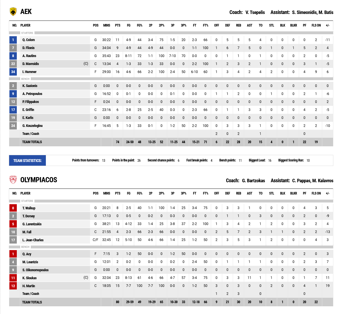 Δεκάλεπτα: 15-12, 35-27, 58-50, 74-80.