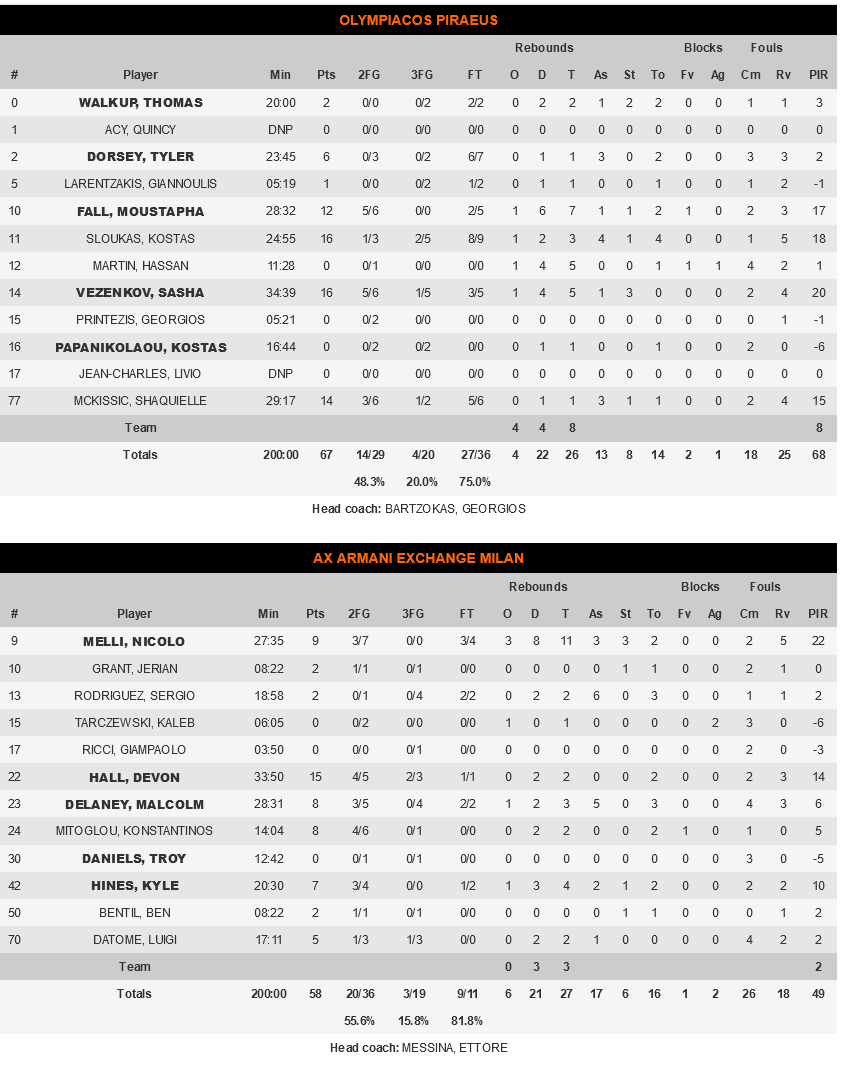 Ο Ολυμπιακός επιβλήθηκε στο ΣΕΦ της Αρμάνι Μιλάνο με 67-58, στο πλαίσιο της 27ης αγωνιστικής της Ευρωλίγκας και έκανε ένα ακόμη αποφασιστικό βήμα για μια θέση στα πλέι οφ.