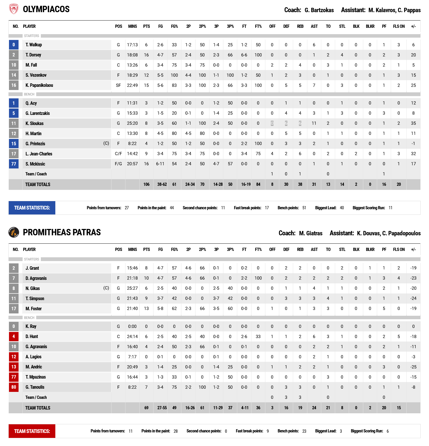 Ο Ολυμπιακός «διέλυσε» τον Προμηθέα στο ΣΕΦ με 106-69, έκανε το 3-0 στην ημιτελική σειρά και πήρε πανηγυρικά την πρόκριση για τους τελικούς της Stoiximan Basket League.