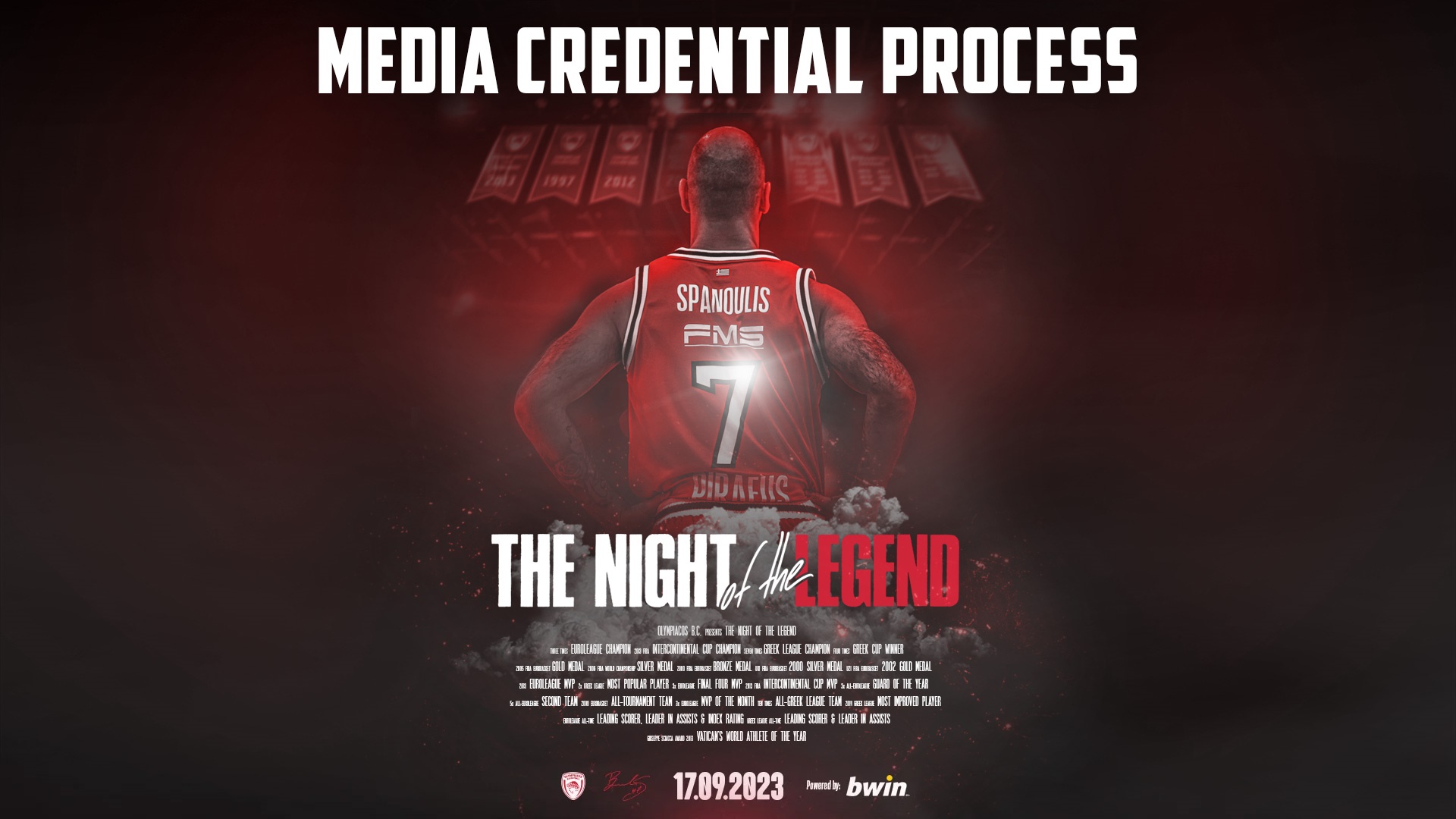 H KAE Ολυμπιακός ανακοινώνει πως από σήμερα (06/09) ξεκινά η διαδικασία υποβολής αιτημάτων από τους δημοσιογράφους που επιθυμούν να «καλύψουν» την μεγάλη βραδιά του Βασίλη Σπανούλη, “The Night Of The Legend” (17/09/23).