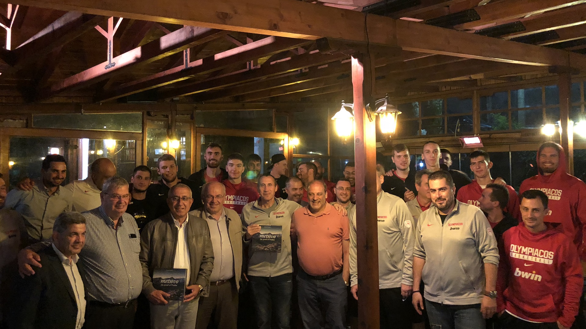 The Olympiacos delegation visited downtown Metsovo Tuesday evening (28/08) and had dinner at the “Galaxy” restaurant in the company of the Epirus Regional Governor Mr. Alexandros Kachrimanis and the Mayor of Metsovo Mr. Konstantinos Tzafeas.
