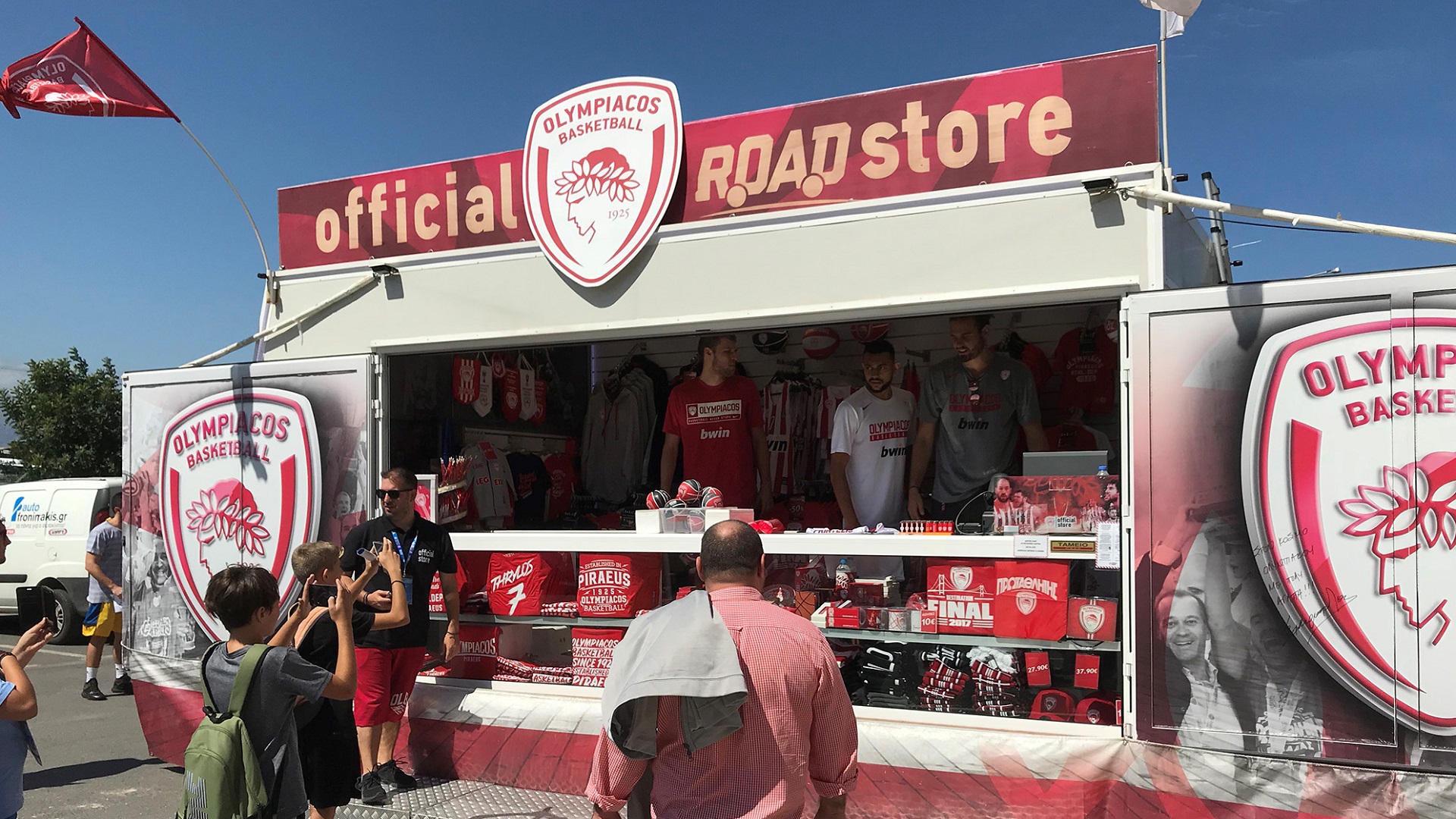 Nigel Williams – Goss, Sasa Vezenkov, Giorgos Bogris, Vassilis Toliopoulos and Aleksei Pokusevski visited the Olympiacos BC Road Store to purchase products, but they didn’t limit their presence to that of customers!