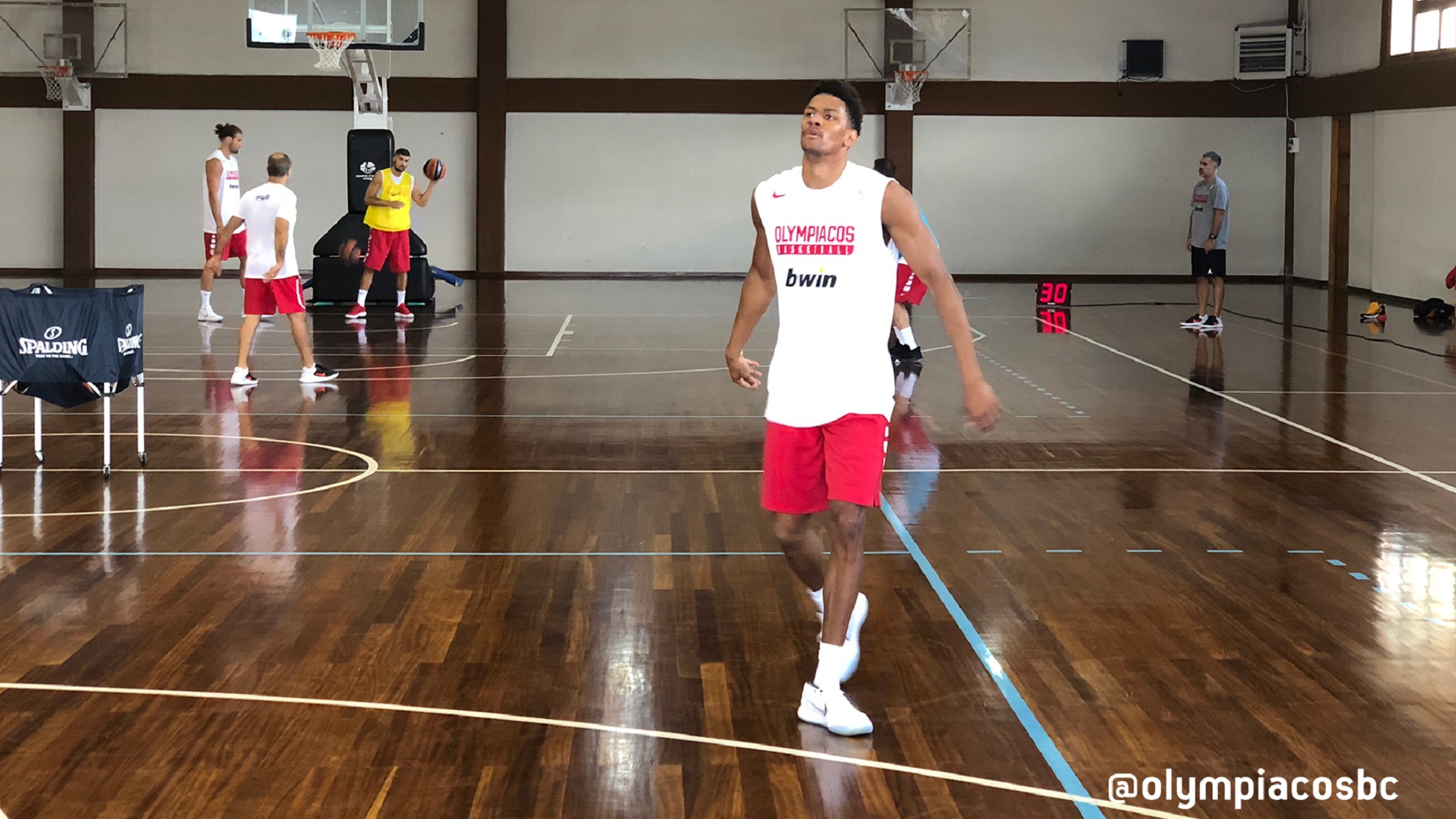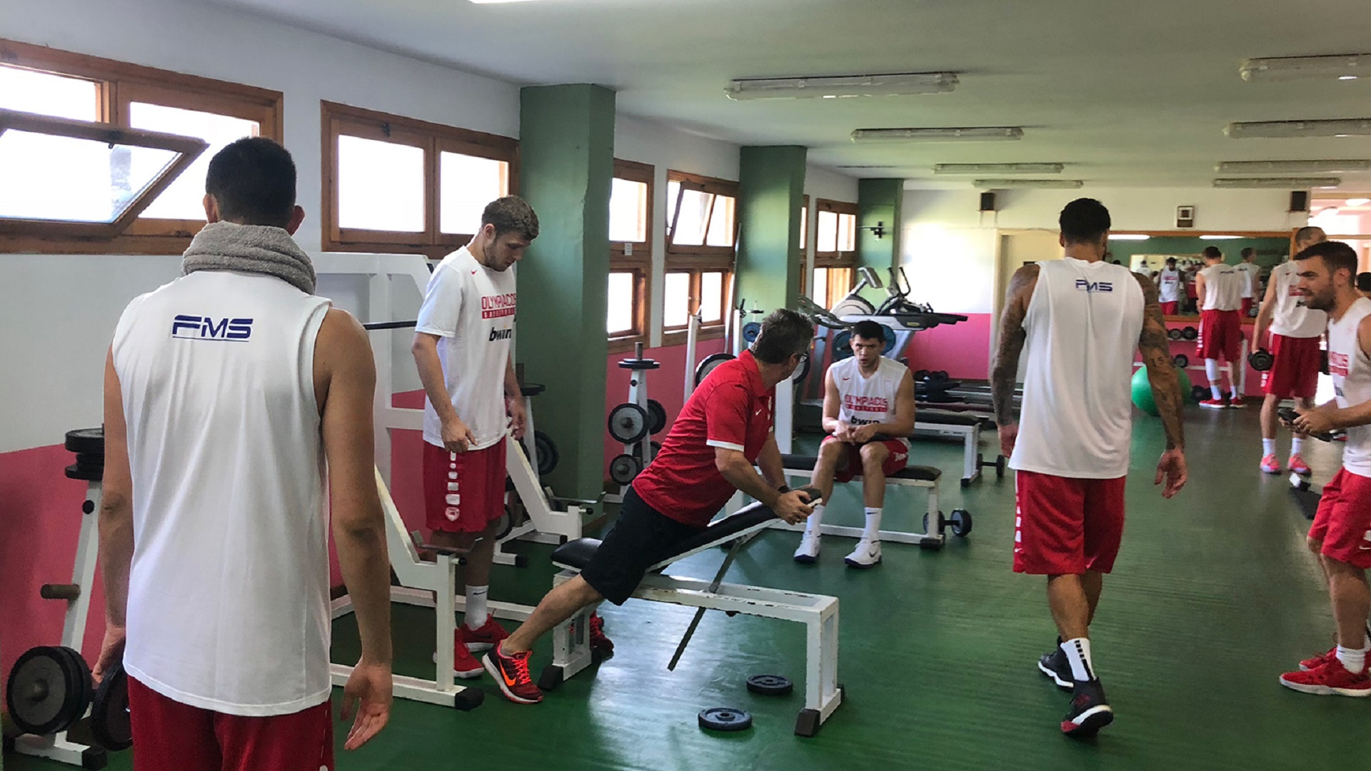 The Olympiacos players having been working hard on and off court! Lots of photos as well as footage from the 3rd day of preseason at Metsovo, this time at the weights room, is proof enough.