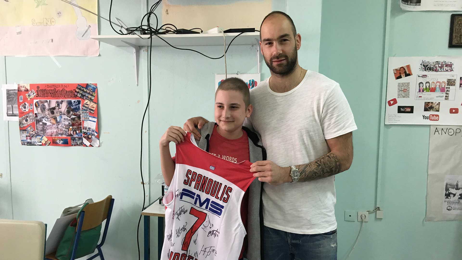 Othello Hunter did a remarkable deed Wednesday morning (25/05). The American center of Olympiacos donated 22,000 bottles of water (1,5L each) to the refugees that are camped at the old Hellininikon airport.