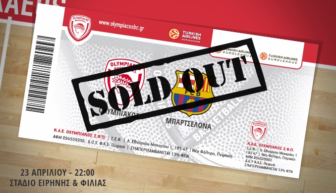 Olympiacos BC announces that all the tickets for the fourth quarter final game for the 2014-2015 Euroleague against Barcelona are sold out.