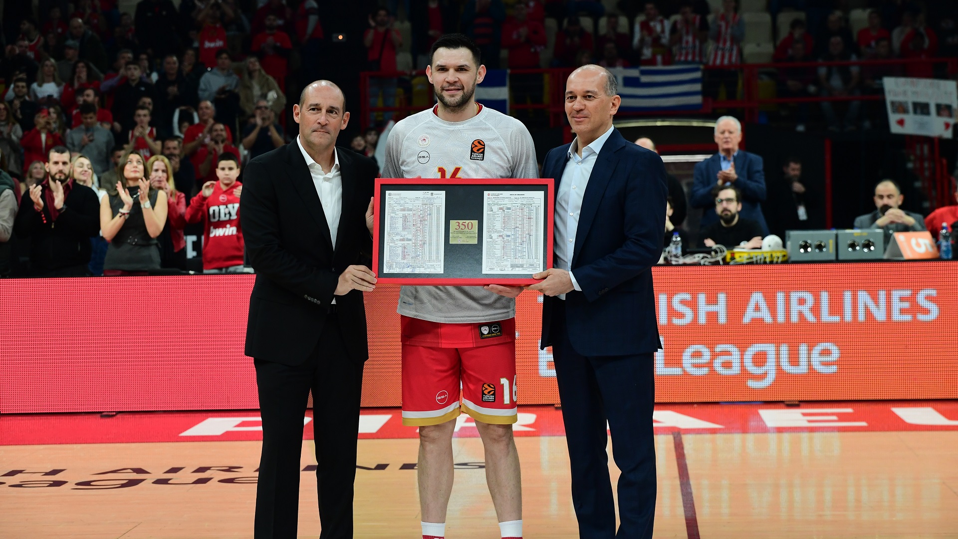 Before the tip-off of the game vs Fenerbahce, the Presidents of Olympiacos BC, Panagiotis and Giorgos Angelopoulos, presented Kostas Papanikolaou with an award for the historical record he now holds.