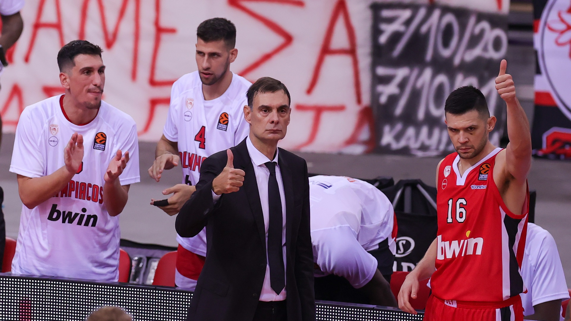 The Olympiacos’ coach, Giorgos Bartzokas, passed credit to his players, aired his complaints about their turnovers during the last minutes of the game and asked that they completely focus on their next game against Barcelona.