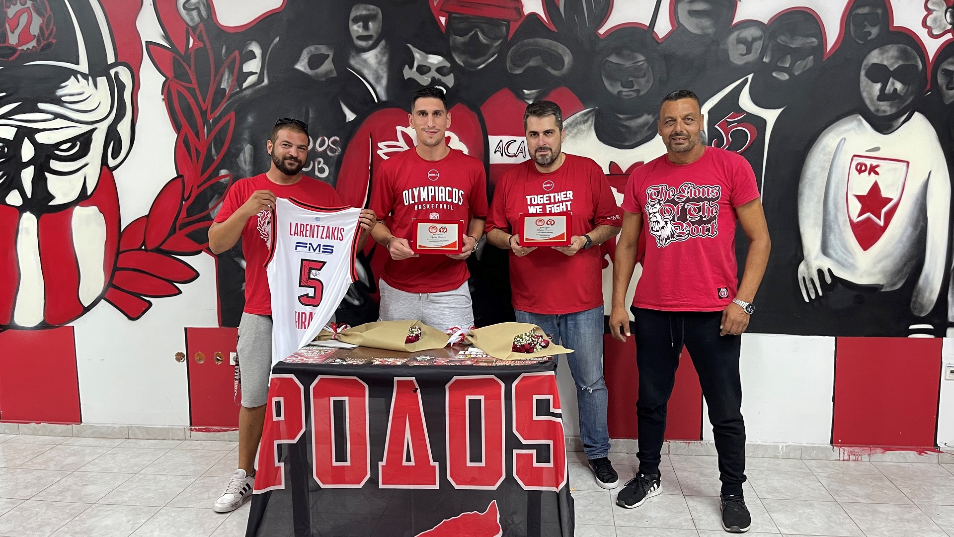 The Olympiacos guard, Giannoulis Larentzakis and our team’s Sports Director, Christos Bafes, visited the Rhodes chapter of Gate 7 yesterday (17/09) and were honored by the Club.